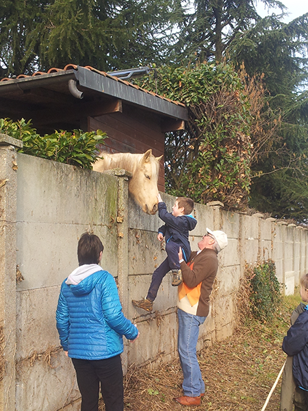 Il cavallo che vedete nella foto si è affacciato alla recinzione per guardare il passaggio di tutti.