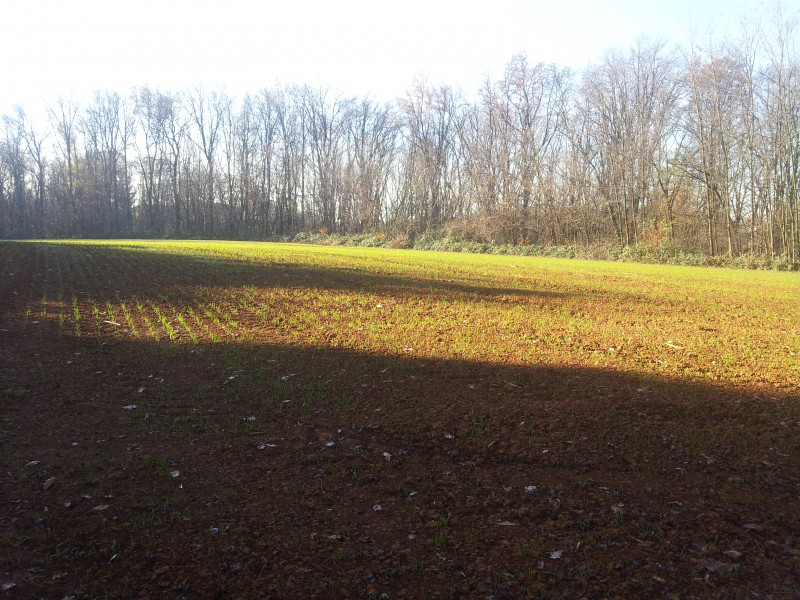 Ad un tratto ci siamo accorti di un campo seminato a grano: la luce era meravigliosa e quelle piccole piantine che sbucavano dalla brina, ci hanno incuriosito. Ne è uscito un detto: “sotto la neve, pane”.